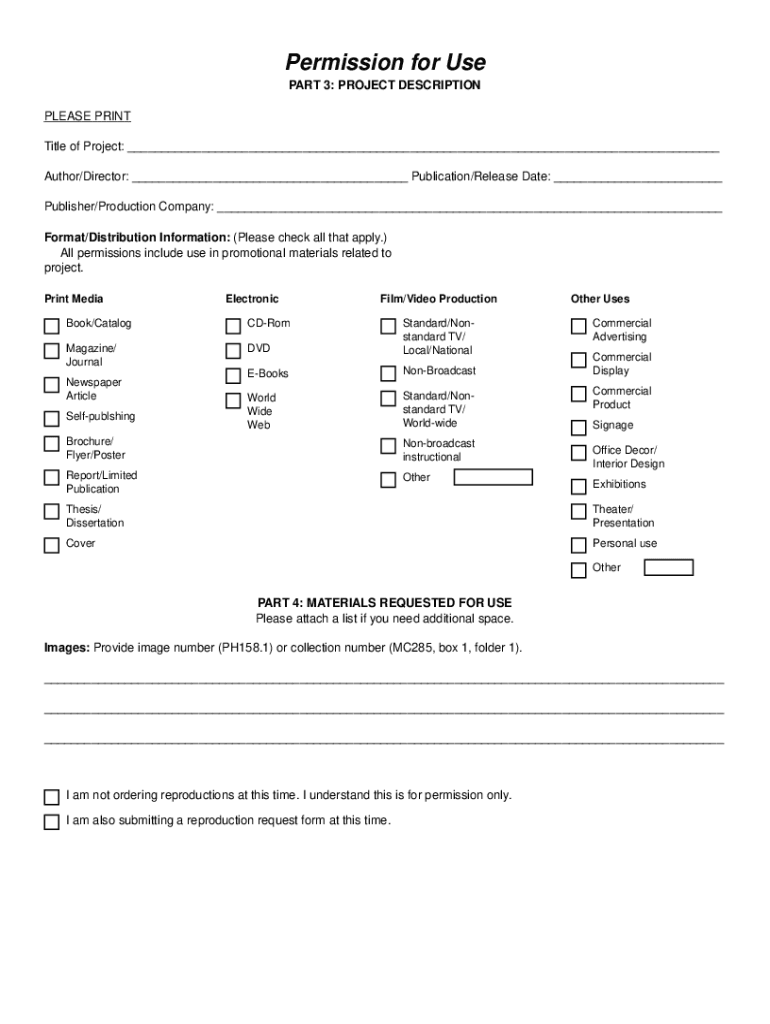 Permission for Use Butterier Bow Public Archives 17 W. Quartz, Butte, MT 59701 Email: archives×BSB.CT.gov Phone: (406) 7823280 Fax: (406) 4976249PART 1: APPLICANT INFORMATION PLEASE PRINT Name: ___