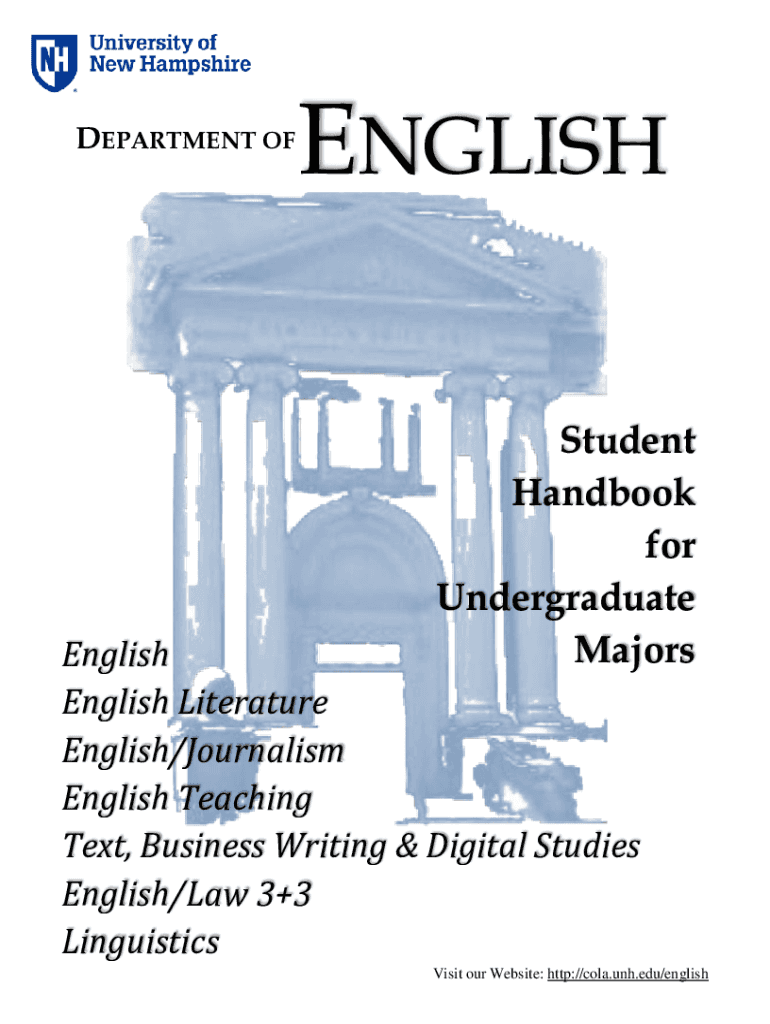 DEPARTMENT ENGLISH Student Handbook for Undergraduate Majors English Literature English/Journalism English Teaching Text, Business Writing & Digital Studies English/Law 3+3 Linguistics Page 0 of 49Visit