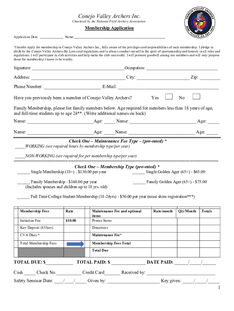 Cone Valley Archers Inc. Chartered by the National Field Archery AssociationMembership Application Date:Name:I hereby apply for membership in Cone Valley Archers Inc., fully aware of the privileges