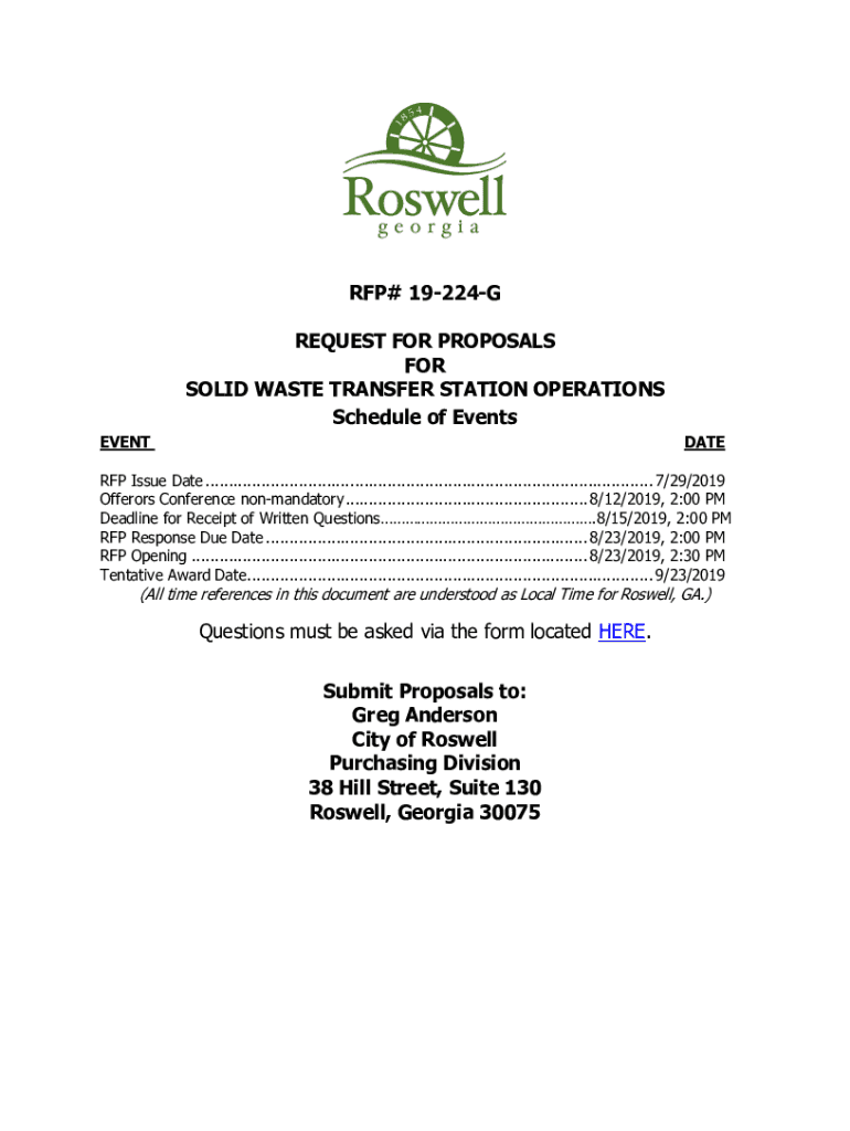 RFP# 19224G REQUEST FOR PROPOSALS FOR SOLID WASTE TRANSFER STATION OPERATIONS Schedule of Events EVENTDATERFP Issue Date ................................................................................................