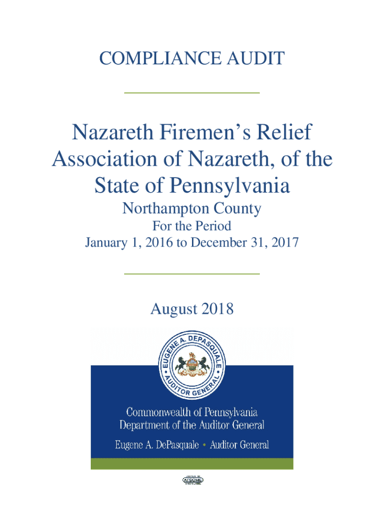 COMPLIANCE AUDIT___ Nazareth Firemen Relief Association of Nazareth, of the State of Pennsylvania Northampton County For the Period January 1, 2016, to December 31, 2017___ August 2018Mr. Wade VanBuskirk,