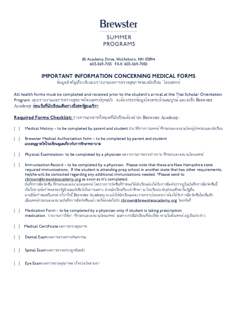 The purpose of the Brewster Academy Wolfeboro opening paperwork is to provide the school with updated information about the students attending, emergency contacts, medical information, etc.