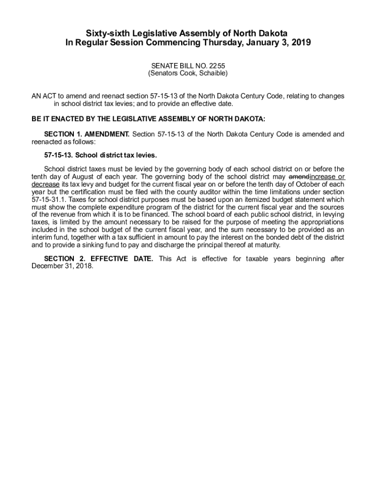 Get the free Enrolled Senate Bill No. 2255 - Sixty-sixth Legislative Assembly of ...