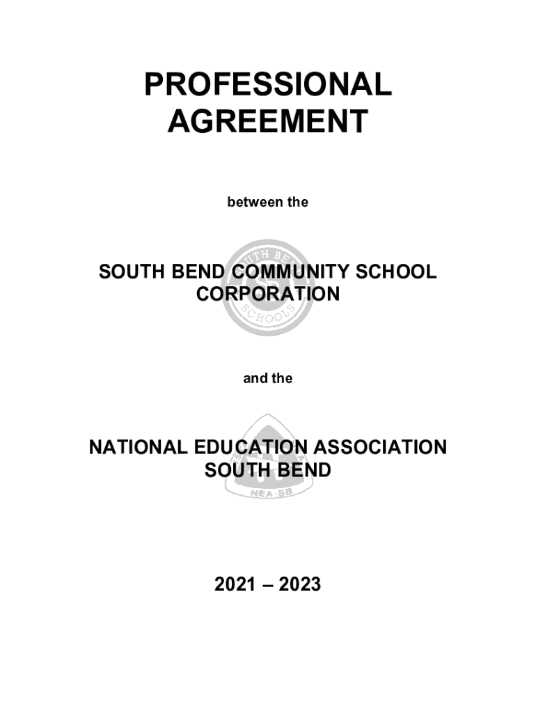 PROFESSIONAL AGREEMENT between through BEND COMMUNITY SCHOOL CORPORATION and national EDUCATION ASSOCIATION SOUTH BEND2021 2023The individuals whose names appear below, representing the National Education