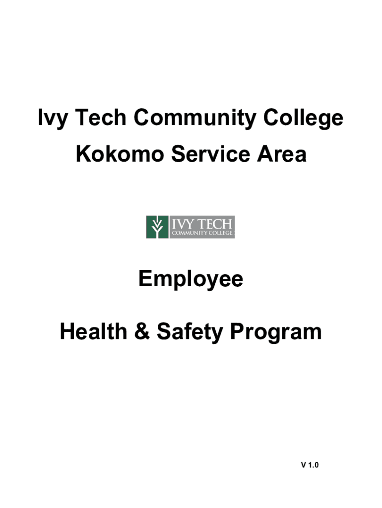 Ivy Tech Community College Kokomo Service Reemployed Health & Safety Program 1.0Record of Change Any changes made in this document should be recorded in this journal. NameDateChange(s) Made2TABLE