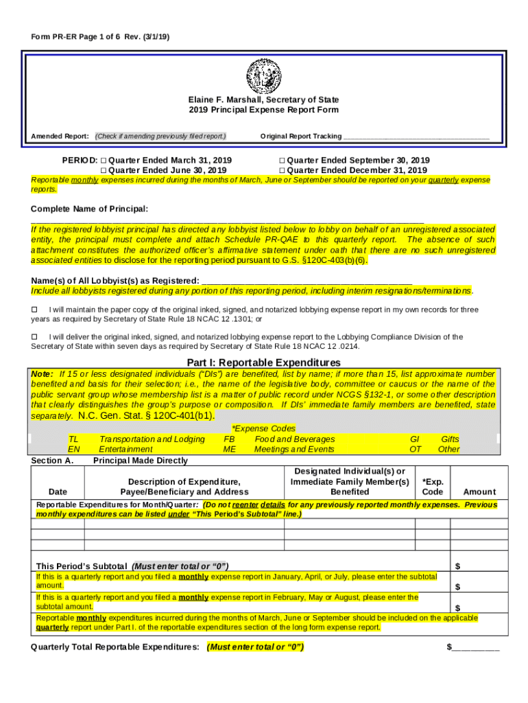 Template PR-ER (Rev - North Carolina Secretary of State instructions