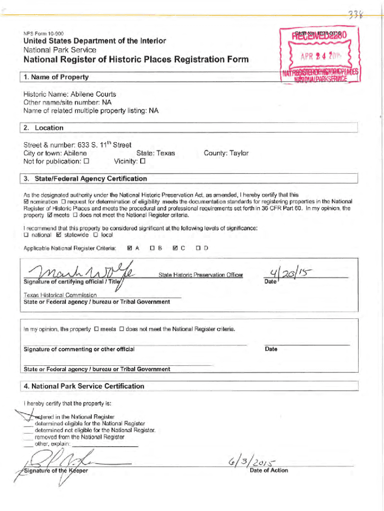 NPS Form 10900United States Department of the Interior National Park ServiceNational Register of Historic Places Registration Form 1. Name of Property Historic Name: Abilene Courts Other name/site