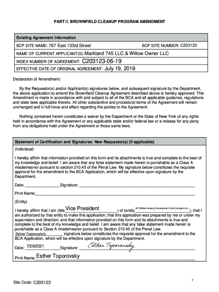 6LWH&RGHC203123BROWNFIELD CLEANUP PROGRAM (BCP) APPLICATION TO AMEND BROWNFIELD CLEANUP AGREEMENT AND AMENDMENT PART I. BROWNFIELD CLEANUP AGREEMENT AMENDMENT APPLICATION &KHFNWKHDSSURSULDWHER[HE