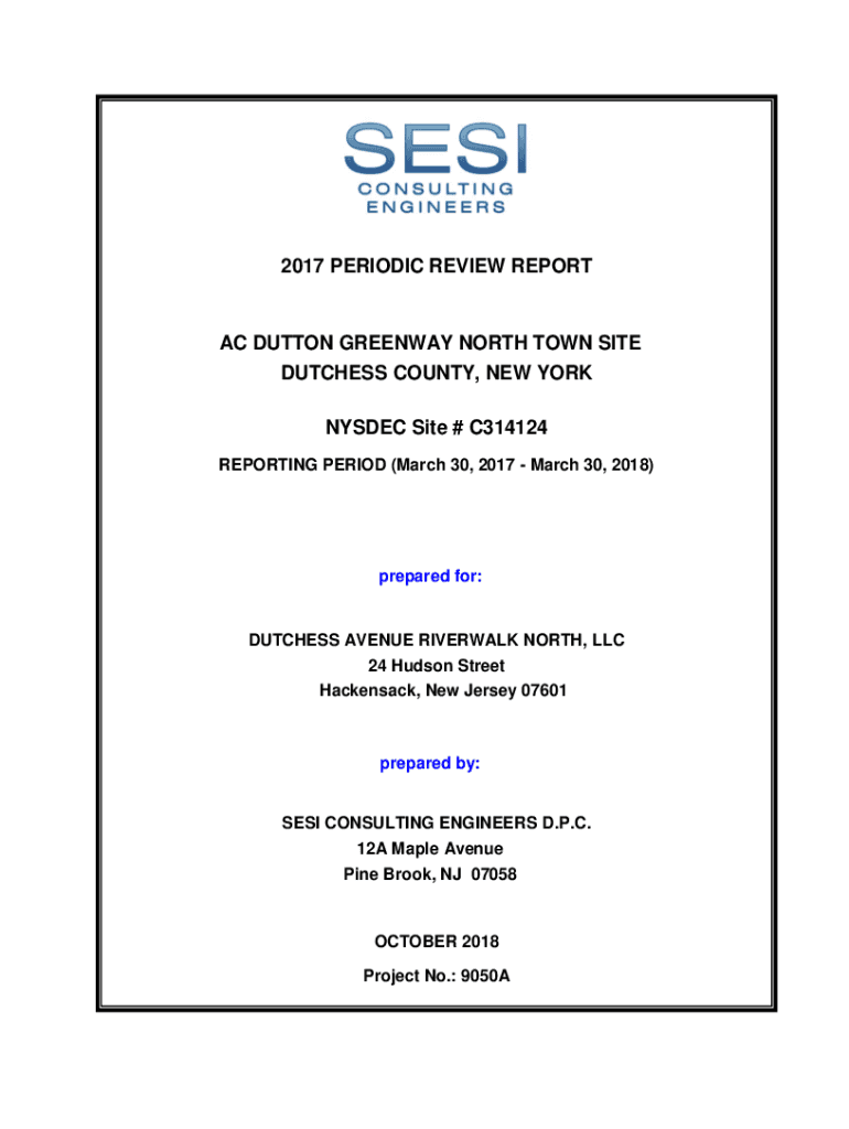 2017 PERIODIC REVIEW REPORT AC BUTTON GREENWAY NORTH TOWN SITE DUTCHESS COUNTY, NEW YORK NYSE Site # C314124 REPORTING PERIOD (March 30, 2017, March 30, 2018)prepared for:DUCHESS AVENUE RIVERBANK