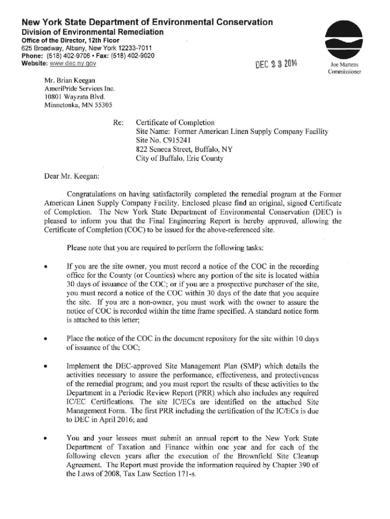New York State Department of Environmental Conservation Division of Environmental Remediation Office of the Director, 12th Floor 625 Broadway, Albany, New York 122337011 Phone: (518) 4029706 Fax: