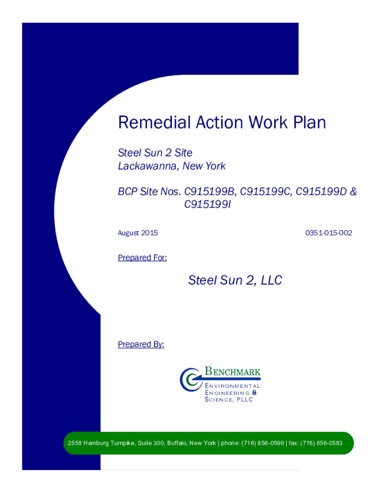 Remedial Action Work Plan Steel Sun 2 Site Lackawanna, New York BCP Site Nos. C915199B, C915199C, C915199D & C915199I August 20150351015002Prepared For:Steel Sun 2, Prepared By:B n v iron m e n t