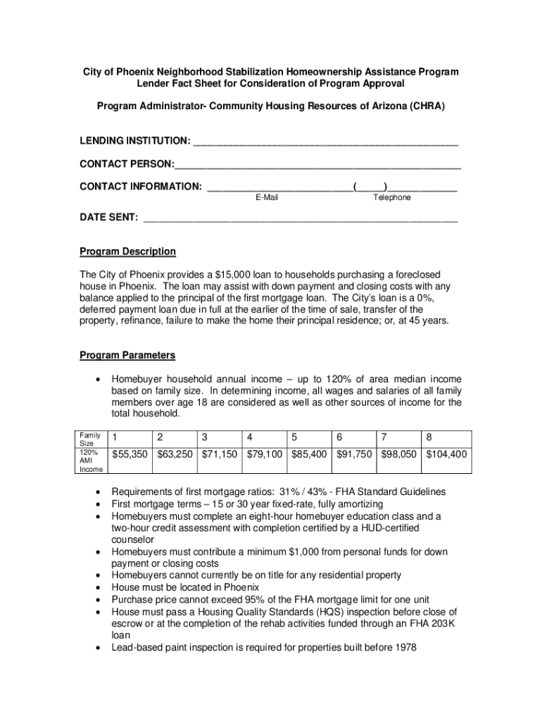 City of Phoenix Neighborhood Stabilization Homeownership Assistance Program Lender Fact Sheet for Consideration of Program Approval Program Administrator Community Housing Resources of Arizona (CARA)LENDING