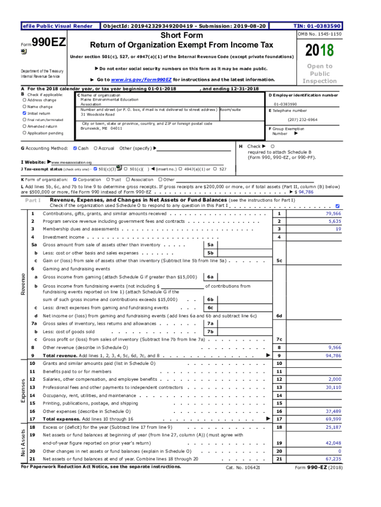 File Public Visual Render990EZFormObjectId: 201942329349200419 Submission: 20190820TIN: 010383590Short FormReturn of Organization Exempt From Income Tax OMB No. 15451150Under section 501(c), 527,