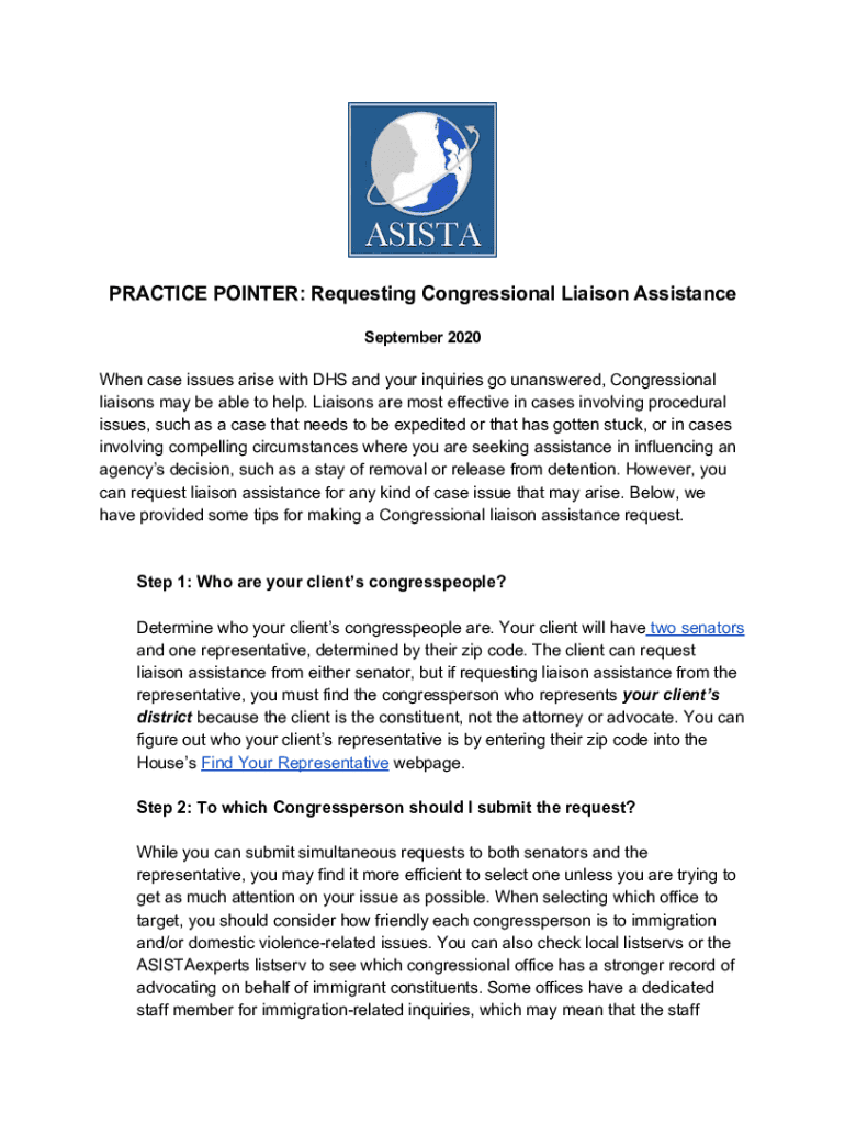 Get the free New Practice Advisory: Requesting Congressional Liaison ...