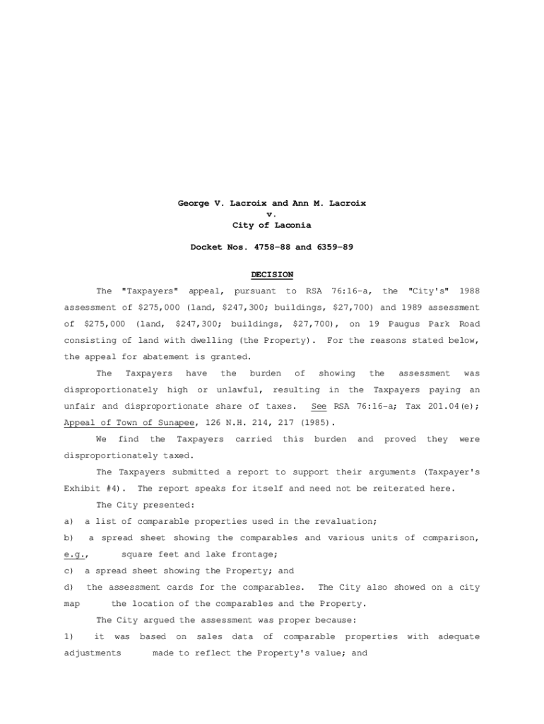 Get the free George V. Lacroix and Ann M. Lacroix v. City of Laconia Docket Nos ...