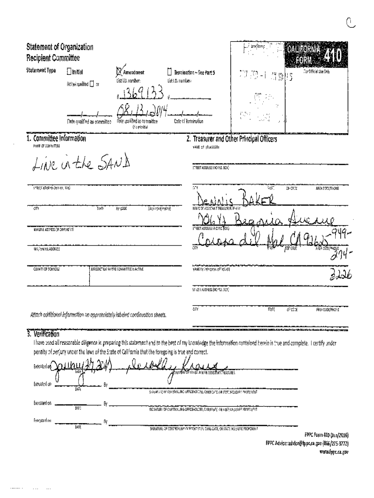 Get the free Statement of Organization Recipient Committee RECEIVE D ...