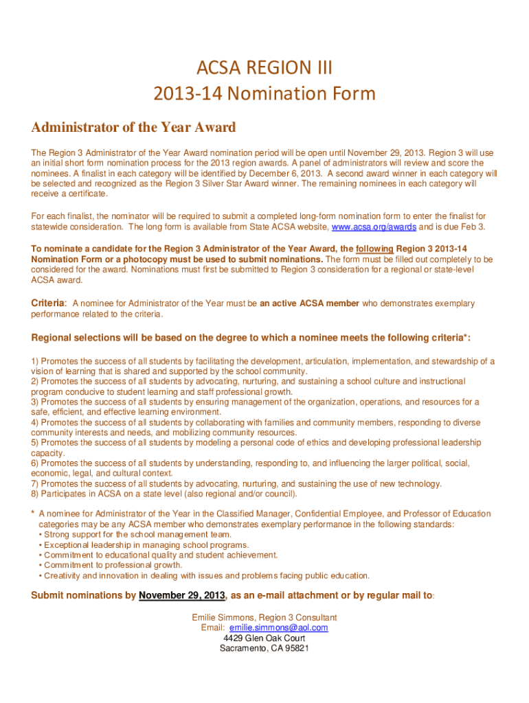 Get the free regions.acsa.orgadministrator-of-the-yearAdministrator of the YearACSA Region 5 - re...