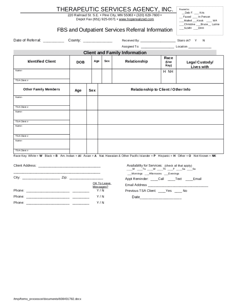 The npino.comcounselor1821076597-therapeuticTherapeutic Services Agency Inc in Pine City, Minnesota ... is a writable document which can be completed and signed for specific needs. In that case, it is furnished to the exact addressee to provide specific info of certain kinds. The completion and signing is able in hard copy or via a trusted service e. g. PDFfiller. Such services help to send in any PDF or Word file without printing out. It also allows you to edit its appearance depending on your needs and put legit e-signature. Once finished, you send the npino.comcounselor1821076597-therapeuticTherapeutic Services Agency Inc in Pine City, Minnesota ... to the respective recipient or several recipients by mail or fax. PDFfiller provides a feature and options that make your template printable. It includes different options for printing out appearance. It doesn't matter how you send a document - physically or by email - it will always look well-designed and clear. In order not to create a new writable document from scratch every time, make the original file as a template. After that, you will have a customizable sample.