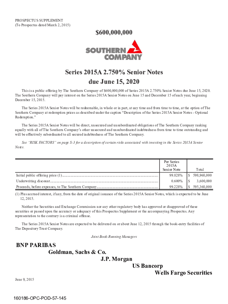 PROSPECTUS SUPPLEMENT (To Prospectus dated March 2, 2015)$600,000,000Series 2015A 2.750% Senior Notes due June 15, 2020, This is a public offering by The Southern Company of $600,000,000 of Series