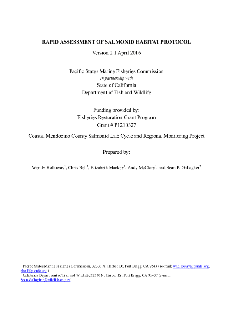 RAPID ASSESSMENT OF SALMON ID HABITAT PROTOCOL Version 2.1 April 2016 Pacific States Marine Fisheries Commission In partnership withstand of California Department of Fish and Wildlife Funding provided