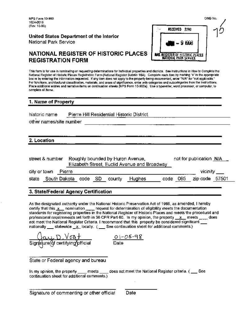 OMB No.NPS Form 10900 10240018 (Rev. 1090)RECEIVED 2280/United States Department of the Interior National Park ServiceNATIONAL REGISTER OF HISTORIC PLACES REGISTRATION Formal REGISTER OF HISTORIC