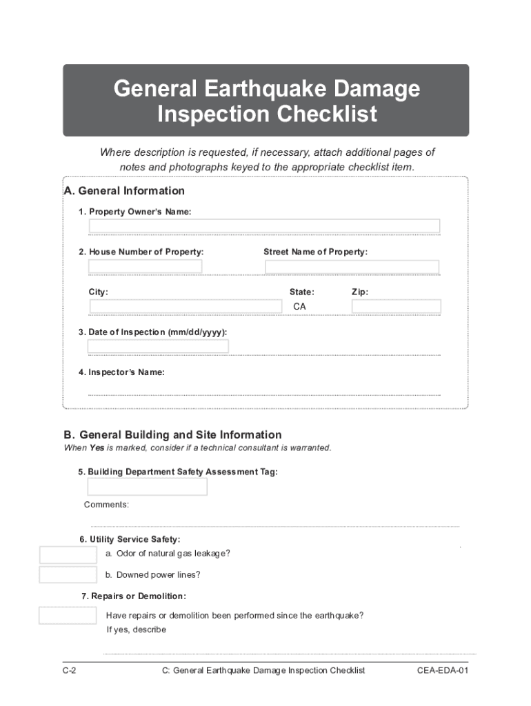 Get the free pir2.tkwebdataGeneral Earthquake Damage Inspection Checklist - VAST