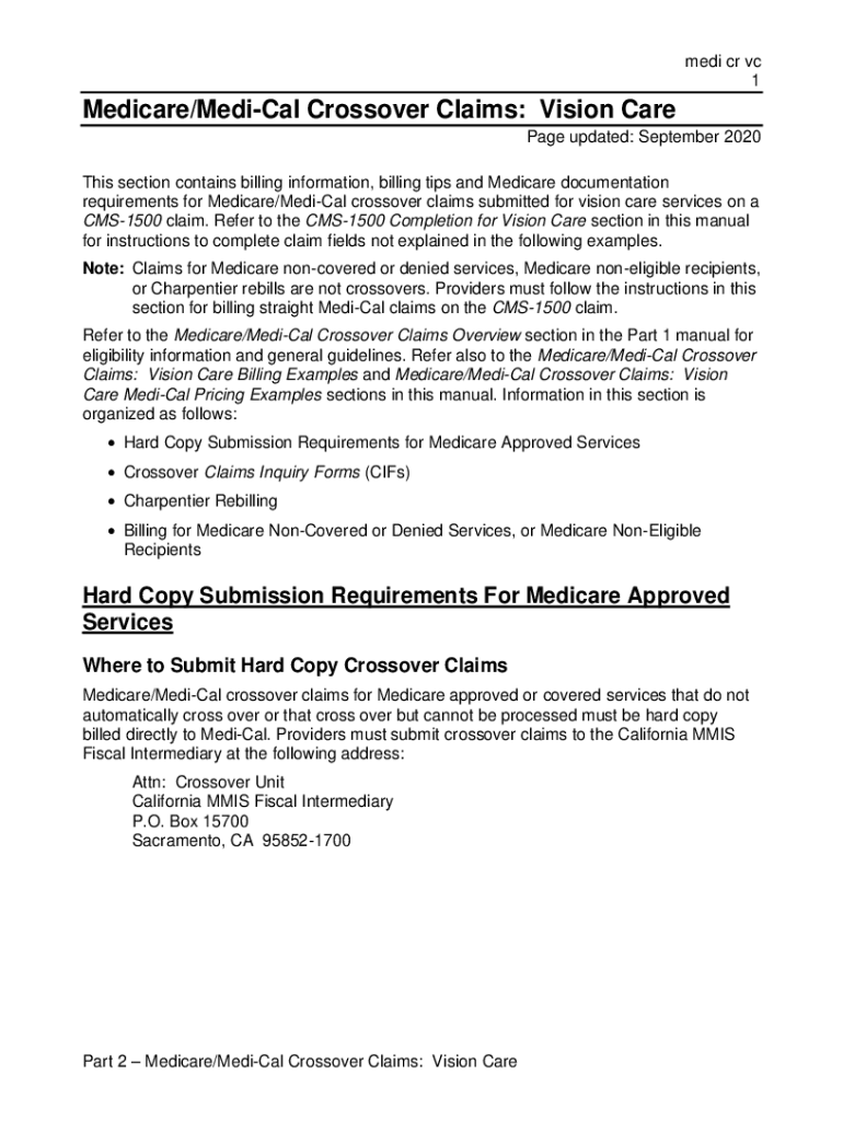 Media CR VC 1Medicare/Medical Crossover Claims: Vision Care Page updated: September 2020 This section contains billing information, billing tips and Medicare documentation requirements for Medicare/Medical