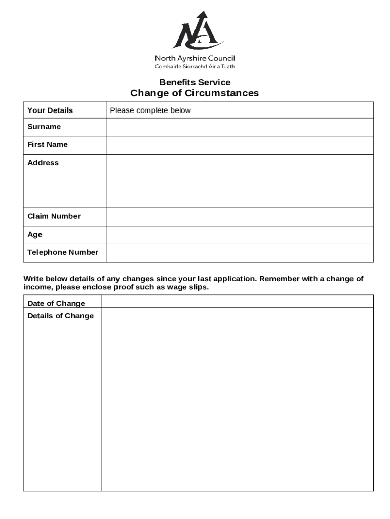 What is Change of circumstance Form?