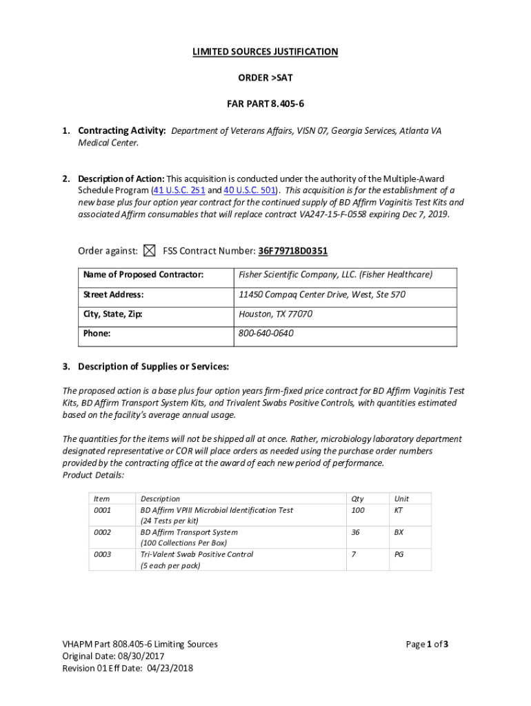 LIMITED SOURCES JUSTIFICATION ORDER SAT FAR PART 8.4056 1. Contracting Activity: Department of Veterans Affairs, VISA 07, Georgia Services, Atlanta VA Medical Center. 2. Description of Action: This