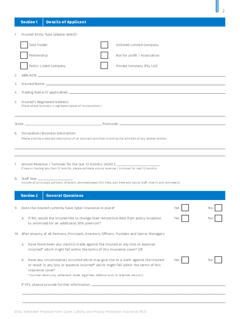 Webster Proposal Form1Cyber Liability & Privacy Protection InsuranceIMPORTANT NOTICES Please read the following before proceeding to complete this Proposal Form. Your Duty of Disclosure Before you