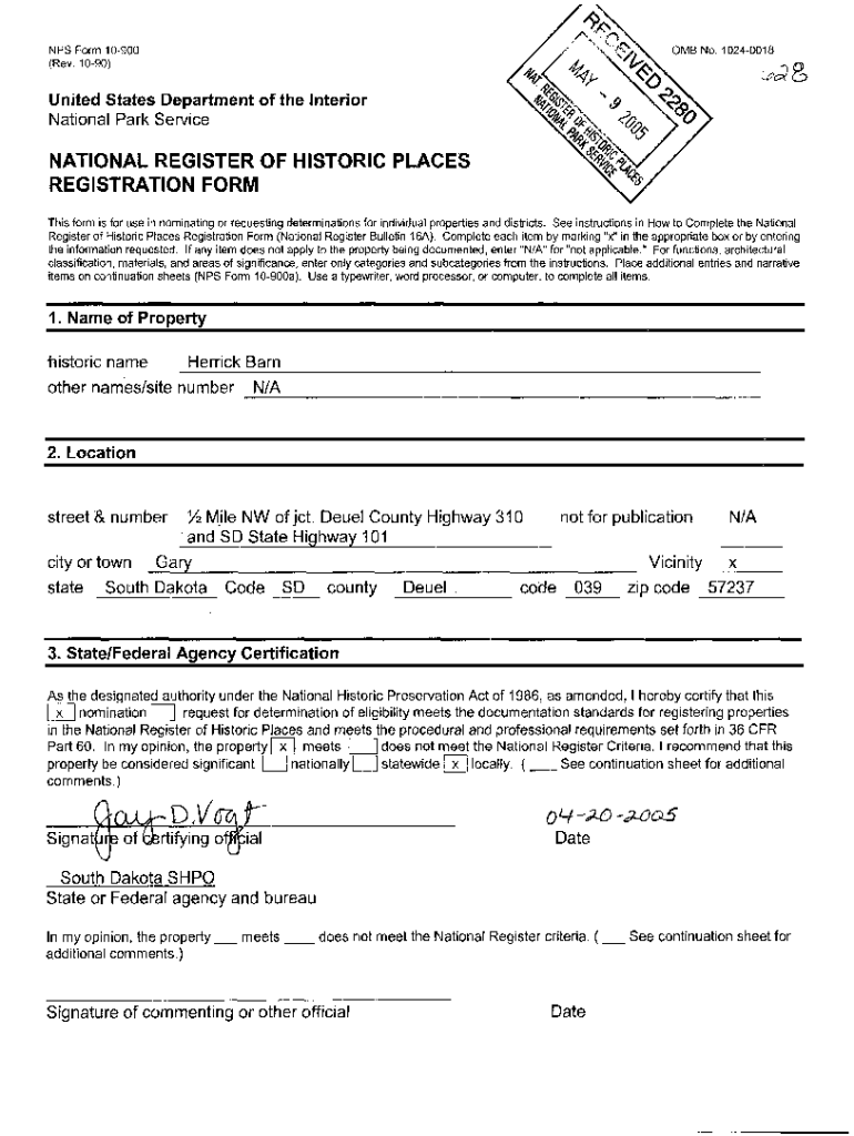 Get the free Nps Form 10900 Rev 1090omb No 10240018 United States ...