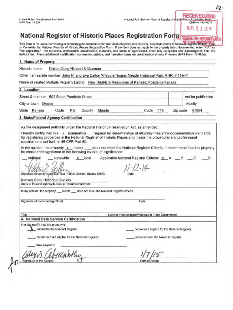 Get the free Dalton Gang Hideout and Museum OMB No. 1024 0018