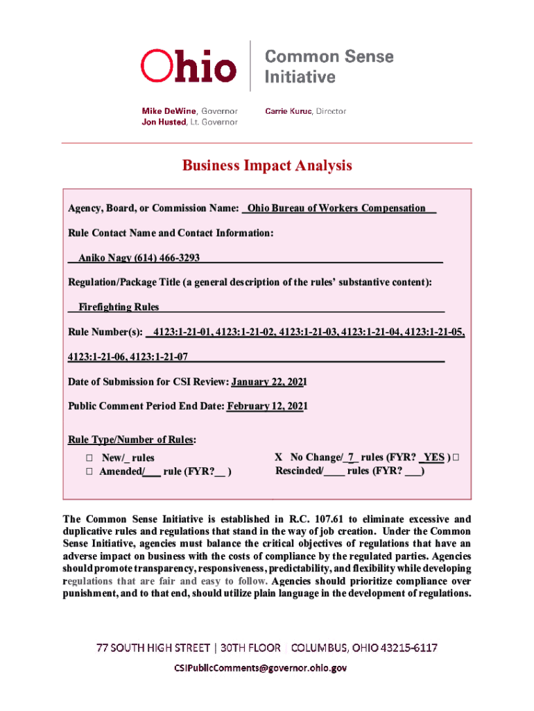 Business Impact Analysis Agency, Board, or Commission Name: _Ohio Bureau of Workers Compensation__ Rule Contact Name and Contact Information: __Anika Nagy (614) 4663293 ___ Regulation/Package Title