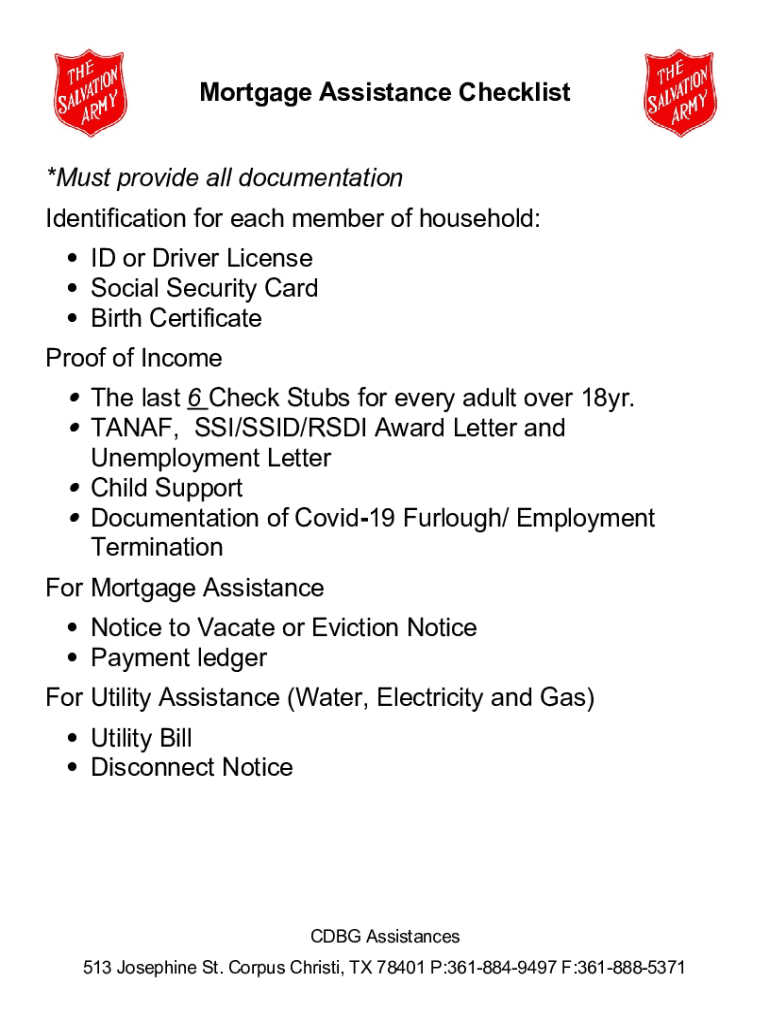 Mortgage Assistance Checklist *Must provide all documentation Identification for each member of household: ID or Driver License Social Security Card Birth Certificate Proof of Income The last 6 Check