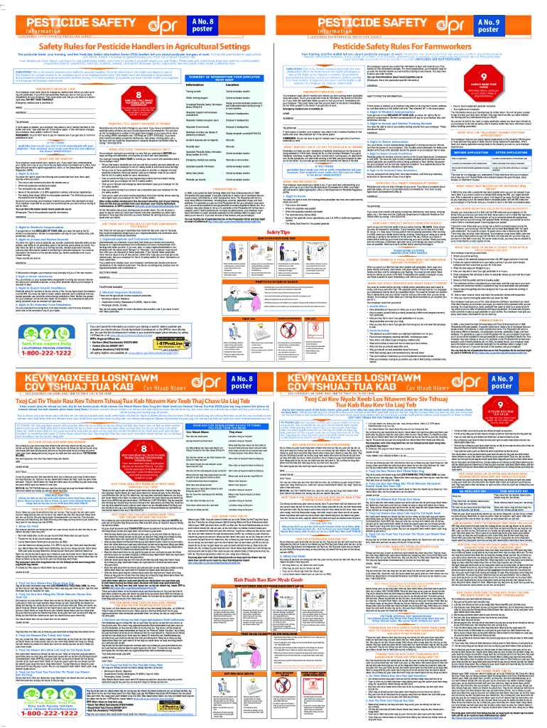 Pesticide Safety InformationPesticide Safety Information No. 8 posterCALIFORNIA ENVIRONMENTAL PROTECTION AGENCYCALIFORNIA ENVIRONMENTAL PROTECTION AGENCYSafety Rules for Pesticide Handlers in Agricultural