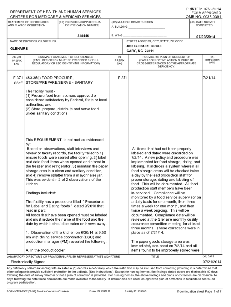 PRINTED: 07/29/2014 FORM APPROVEDDEPARTMENT OF HEALTH AND HUMAN SERVICES CENTERS FOR MEDICARE & MEDICAID SERVICES STATEMENT OF DEFICIENCIES AND PLAN OF CORRECTION(X1) PROVIDER/SUPPLIER/CIA IDENTIFICATION