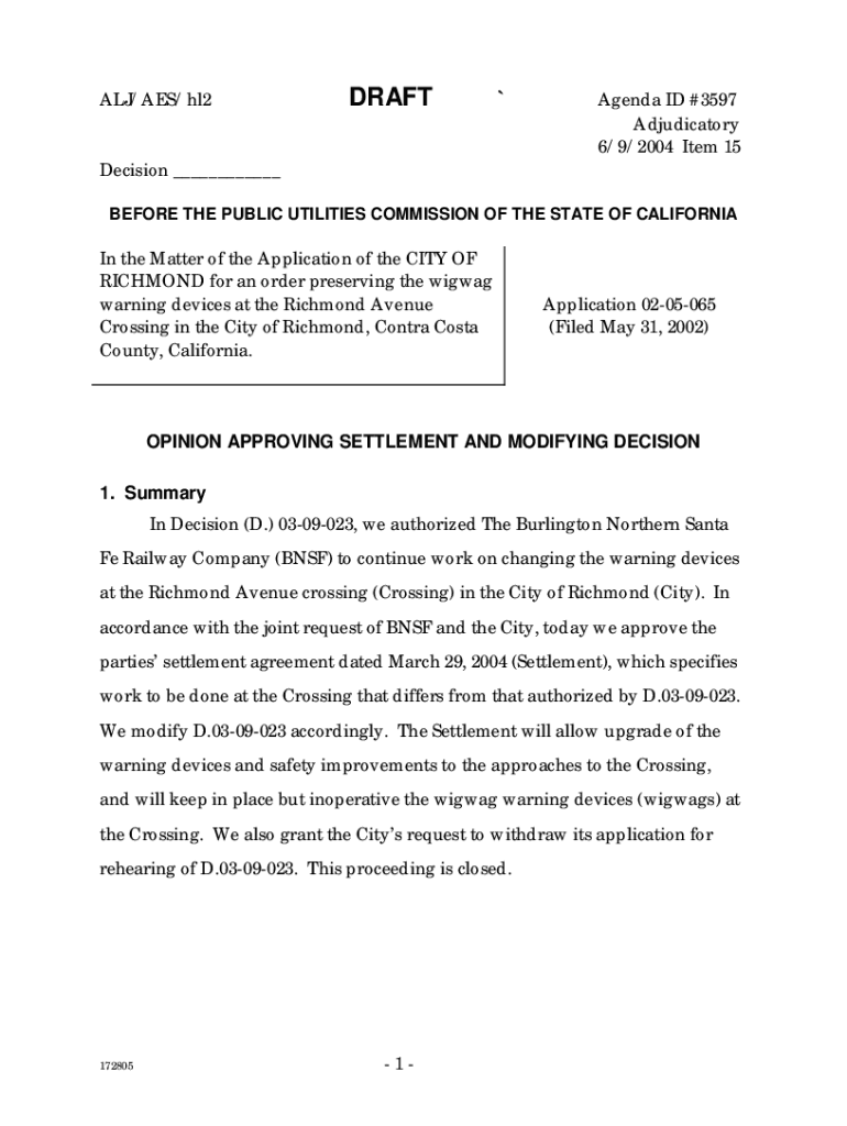 ALJ/AES/hl2DRAFT×Agenda ID #3597 Adjudicatory 6/9/2004 Item 15Decision ___ BEFORE THE PUBLIC UTILITIES COMMISSION OF THE STATE OF Californian the Matter of the Application of the CITY OF RICHMOND