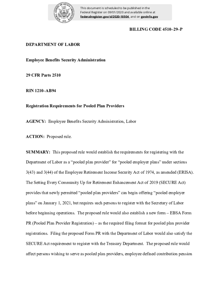 This document is scheduled to be published in the Federal Register on 09/01/2020 and available online at federalregister.gov/d/202018504, and on gov info. Billing CODE 451029P DEPARTMENT OF LABOR