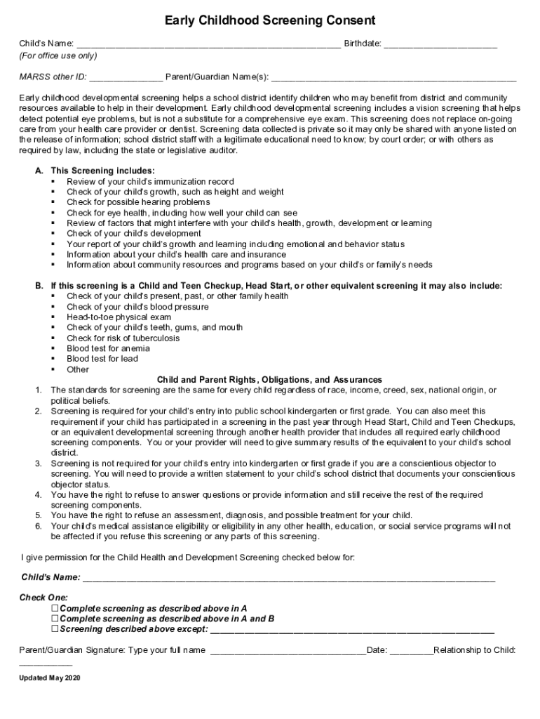 Welcome to Early childhood Screening! Please note: These fillable forms need to be downloaded and saved to your computer first. Then find the downloaded document and complete it and save again. After