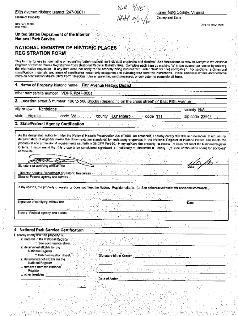 Fifth Avenue Historic District (2470001)Luxembourg County, Virginian of PropertyCounty and State5. Classification Ownership of Property(Check as many boxes as apply)Category of Property (Check only