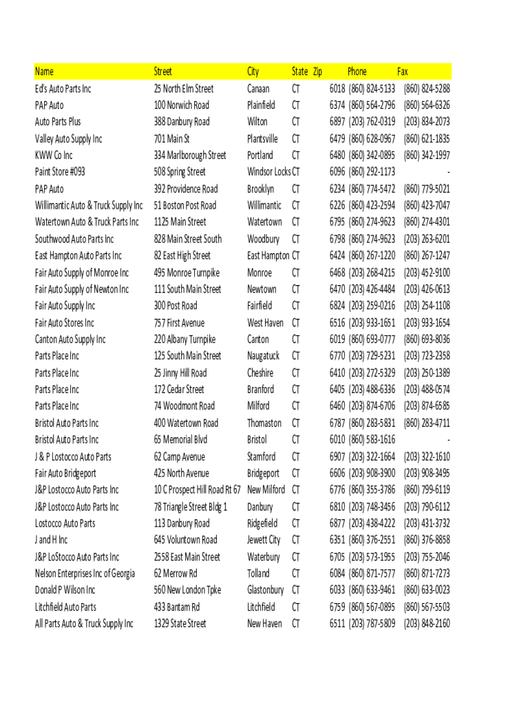 Get the free Name Street City State Zip Phone Fax Ed's Auto Parts Inc 25 North ...