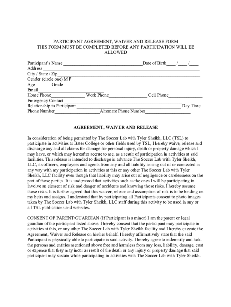 It also serves as a legal document to protect TSL from liability in case of any accidents or injuries that may occur during participation.