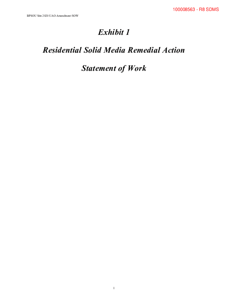 100008563 R8 SUMS BISON Site 2020 LAO Amendment Exhibit 1 Residential Solid Media Remedial Action Statement of Work1BPSOU Site 2020 LAO Amendment SOW1.0 Introduction This Residential Solid Media Remedial