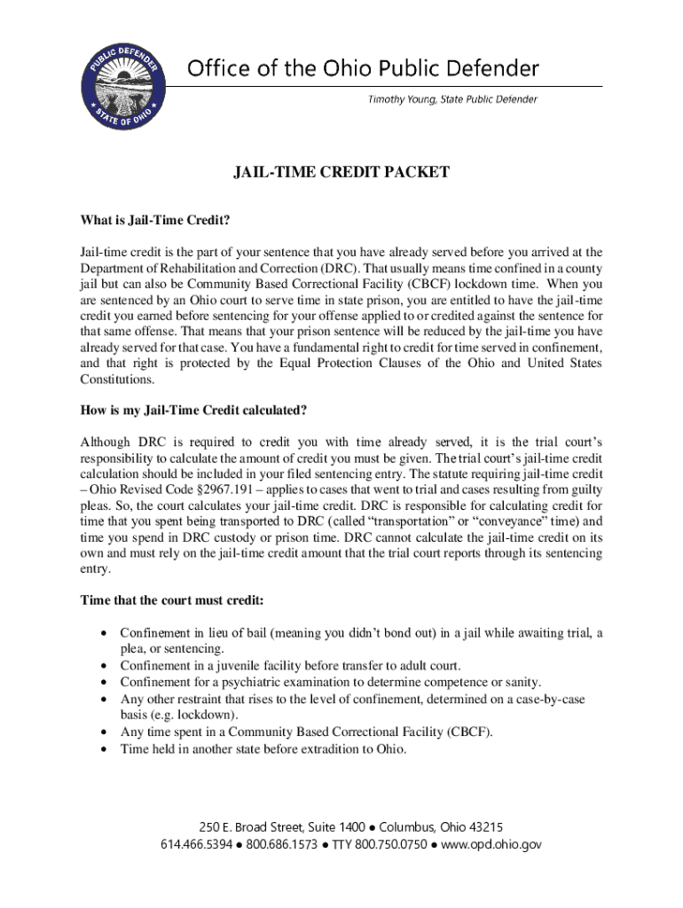 Anyone who has spent time in jail and wants to potentially reduce their sentence or receive credit for their time served needs to understand and fill out jail time credit.