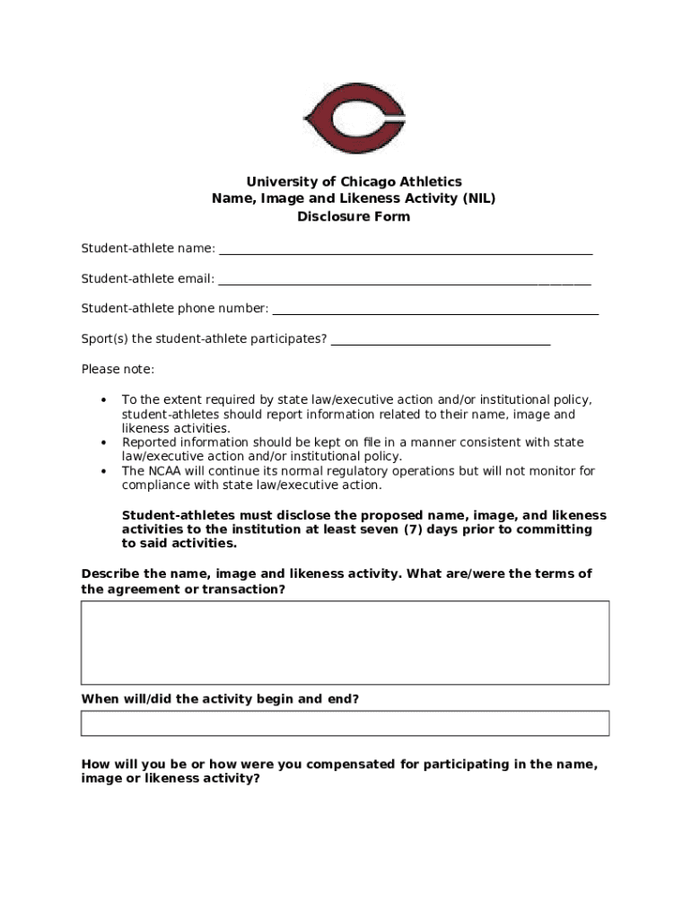 What is Name Image Likeness (NIL) Ination - University of Mary ... - athletics uchicago Form?
