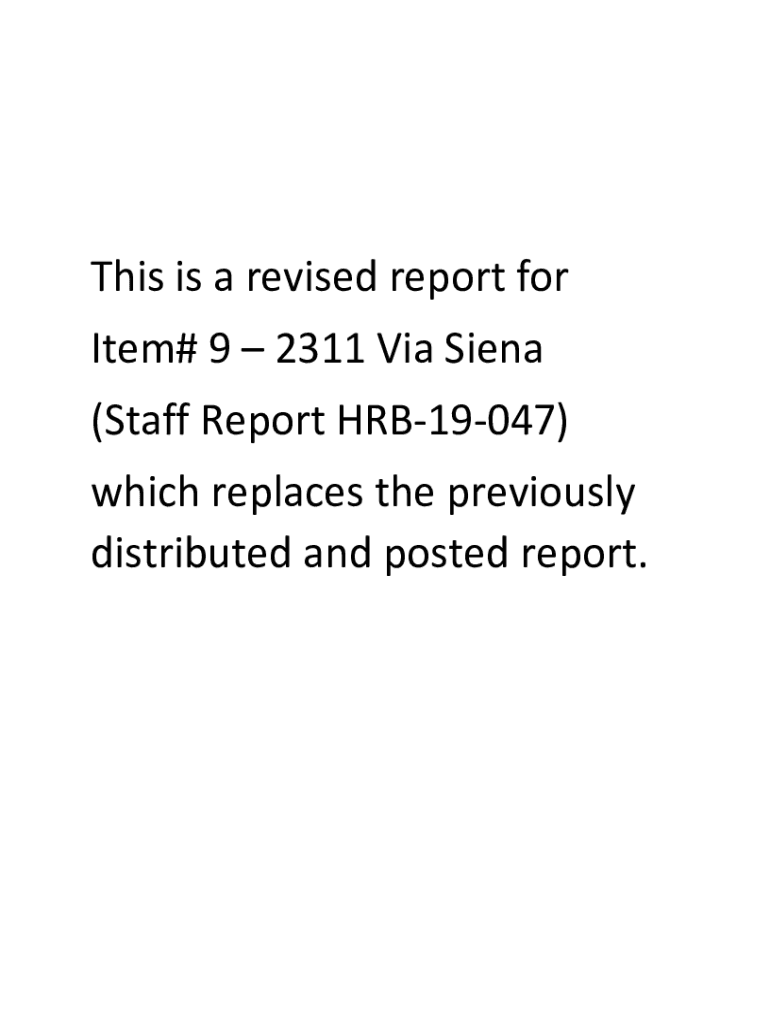 This is a revised report for Item# 9 2311 Via Saint (Staff Report HRB19047) which replaces the previously distributed and posted report. The City of San DiegoReport to the Historical Resources Board