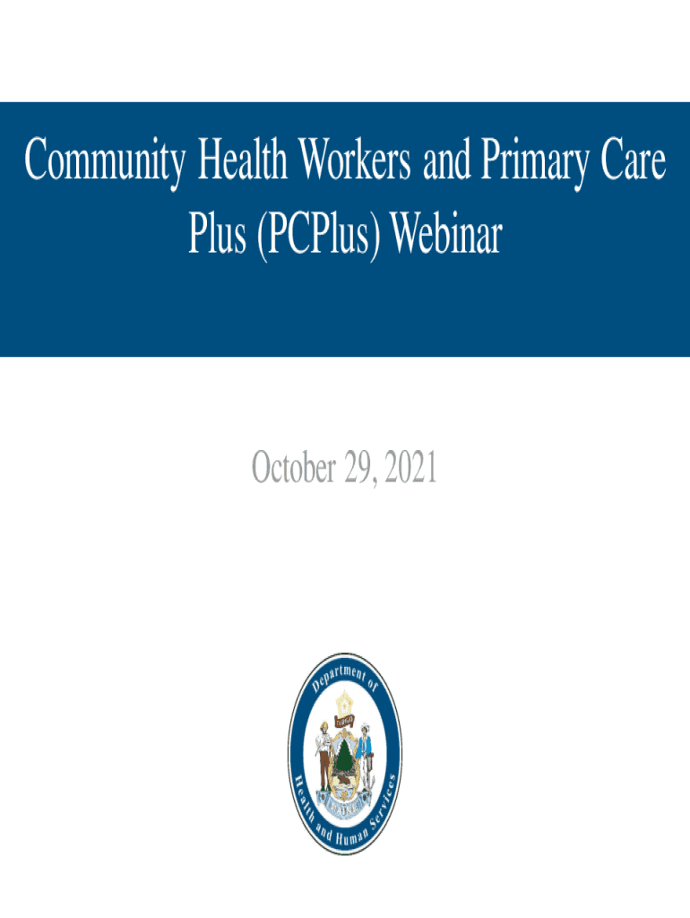 Community Health Workers and Primary Care Plus (Plus) Webinar October 29, 2021Agenda What is a Community Health Worker? How does the Community Health Worker role connect to Primary Care Plus? Overview
