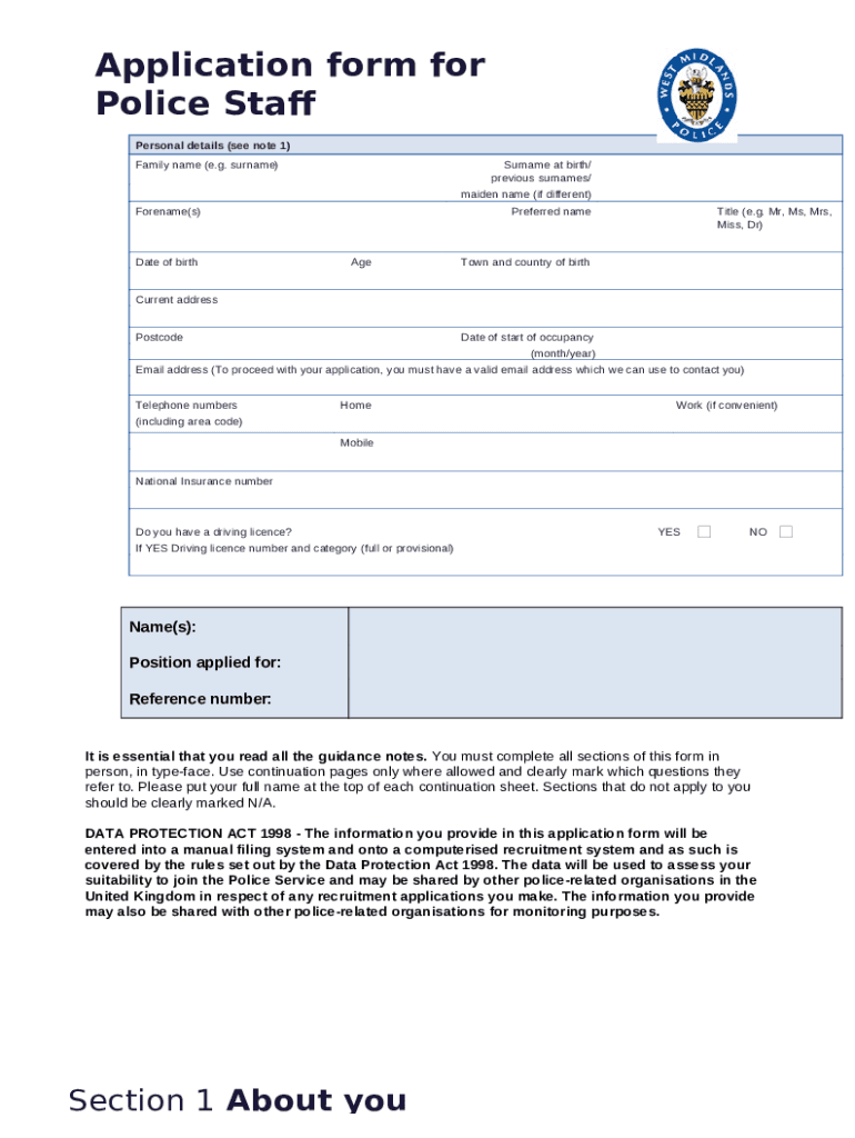 Instructions for the form Application for appointment in a police staff role