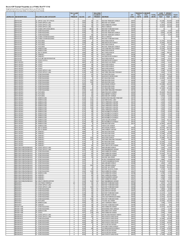Get the free Bronx ICIP Exempt Properties as of FINAL Roll FY'17/18