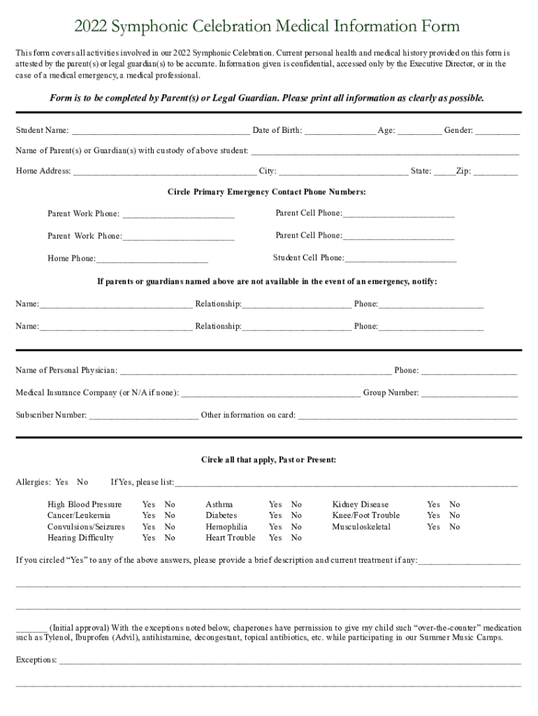 Student Name: ___ Date of Birth: ___ Age: ___ Gender: ___Name of Parent(s) or Guardian(s) with custody of above student: ___Home Address: ___ City: ___ State: ___Zip: ___Circle Primary Emergency Contact